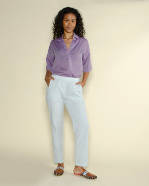 Le pantalon Pacifio de la marque Diega. On adore ce pantalon droit à la coupe fuselé qui possède des poches italiennes sur le devant. Vous pouvez l'associer avec un t shirt blanc classique ou une chemise Diega !