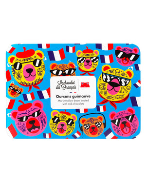 Redécouvrez la douceur de l'enfance avec ces oursons guimauve, moelleux et tendres, enrobés d'une fine couche de chocolat au lait. Présentés dans une boîte métallique ornée d'illustrations créatives de l'artiste Loïc Lusnia, ces délicieux oursons sont un véritable régal pour les papilles et un objet d'art à collectionner. Un cadeau idéal ou un plaisir à partager. Retrouvez ici toute la gamme Le chocolat des Français !