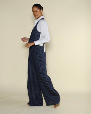 Un gilet Gayo de couleur bleu marine et de la marque Diega. Un gilet de costume rayé blanc et bleu marine. On aime porter ce gilet de costume Gayo avec le pantalon Paco assorti pour un look d'été bohème chic !
