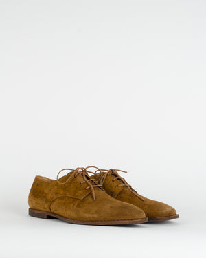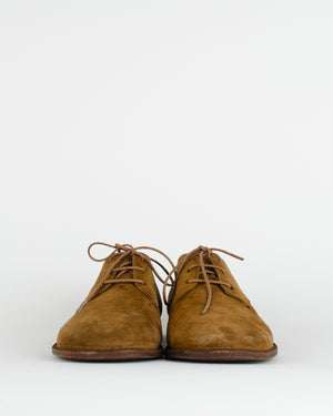 Une paire de derbies beige camel pour homme de la marque Pantanetti, parfaite pour ce printemps! Le cuir italien de la chaussure la rend confortable et idéale pour les tenues chics.