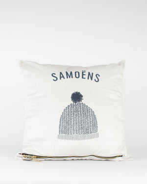 Coussin de la marque Podevache avec un écrit minimaliste et raffiné."Samoens"