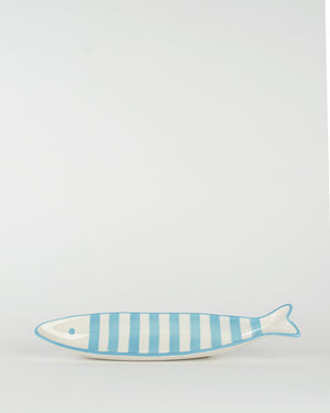 Long plat de la marque Bazar de Luxe en forme de poisson à rayures. Un plat atypique et rétro qui apportera une touche unique à votre table. Parfait pour une soirée entre amis !