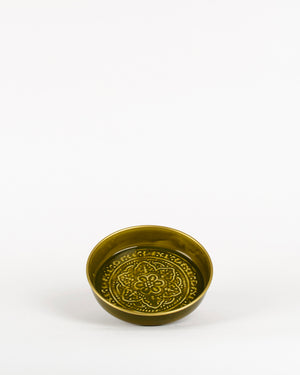 Un mini plateau de couleur kaki avec un relief ethnique et berbère. On craque pour ces pièces de petite taille très sympa pour décorer une cuisine ou juste en vide-poche ! Retrouvez tous les objets de décoration de la marque Bazar de Luxe ici.
