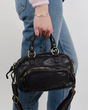 Le sac de forme rectangulaire pour femme de la marque Campomaggi a un format idéal pour le travail. On adore sa poche à l'avant et sa anse qui ajoute une touche retro au sac. Découvrez le ici en kaki.