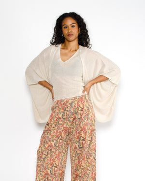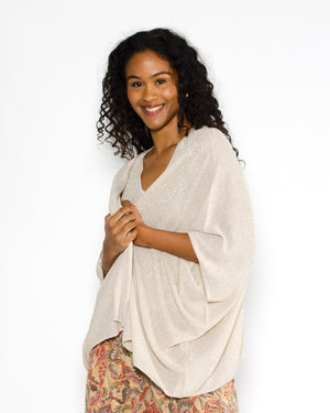 Un poncho de couleur ivoire scintillant pour femme de la marque Momoni. On adore ce poncho pour femme avec ses fils scintillant, le poncho parfait pour mettre au dessus d'un top classique cet été !