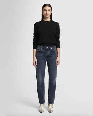 Un jean boyfriend de couleur denim bleu nuit de la marque Seven For All Mankind. On est fan de ce jean à la coupe boyfriend classique hyper décontracté !
