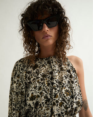 La robe noire imprimée pour femme de chez Laurence Bras. On adore cette jolie robe à motifs fleuris. On adore sa longueur et ses manches bouffantes. Une pièce tendance pour cette saison. Une coupe longue et fluide, une encolure asymétrique.