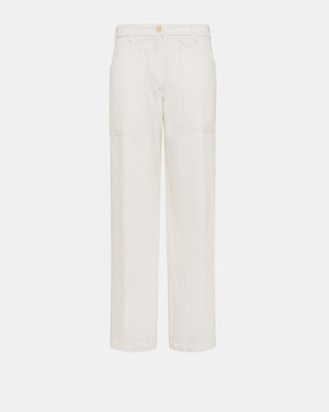 Un pantalon en denim blanc pour femme de la marque Momoni. Coup de coeur pour la coupe de ce pantalon en denim pour femme. Les poches à l'avant du jeans sont imposantes, ce qui donne un coté mode qu'on adore chez POp. Retrouvez la collection Momoni ici !