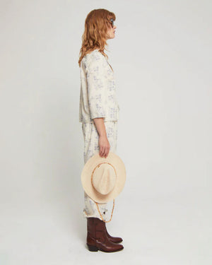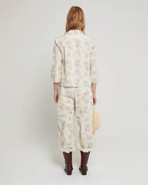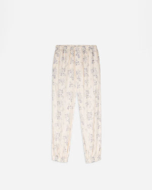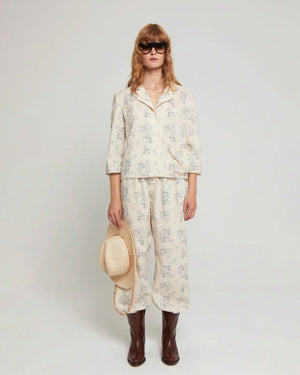 Un pantalon taille haute avec une coupe droite et resserrées au niveau des chevilles. Il possède un élastique avec un lien de serrage. L'imprimé fleuri apportera de la douceur et de la légèreté à vos tenues.