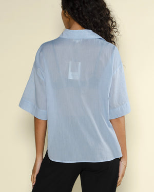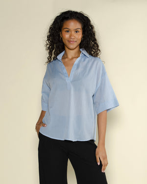 Une chemise Tifana de couleur ciel et de la marque Diega. Une chemise Tifana fluide et confortable grâce à sa composition 100% coton. On adore la couleur ciel de la chemise, idéale pour une tenue bohème chic !