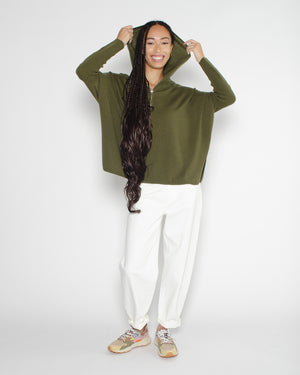 Le gilet Leeds en cachemire et en laine tout doux et confortable de couleur kaki. Un gilet à capuche et à fermeture éclair qu'on adore !
