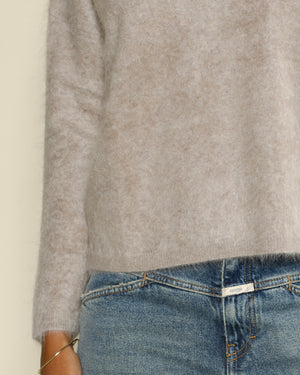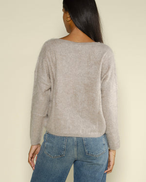 confort exceptionnel / col V allie douceur, légèreté et chaleur / teinte beige intemporelle / coupe féminine et tombé fluide