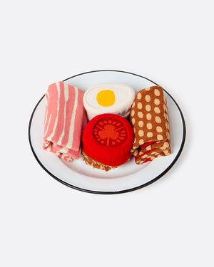 Composition : 58,9% coton, 29,6% polyester, 8,5% élasthanne, 3,0% polyamide Ce coffret de deux paires de chaussettes de la marque Eat My Socks nous rappelle notre voyage en Angleterre et nos petits déjeuners typiques ! Chez Pop And Shoes, nous sommes fan des chaussettes fantaisies pour agrémenter un look sobre du quotidien !