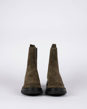 Boots audacieuse / cuir suédé / motif léopard / larges élastiques noirs sur les côtés