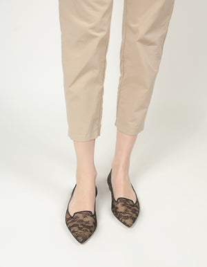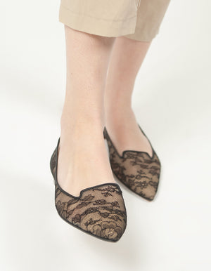Ballerine à bouts pointus en dentelle de coton noire de la marque Prosperine. Sa coupe féminine et son imprimé dentelle tendance font de cette chaussure originale une vrai petite merveille.