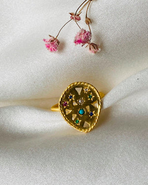 Une petite bague en plaqué or habillée de petites pierres très chics. On craque !
