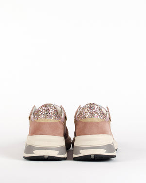Baskets femme / style running / confortable / féminine / touche de brillance / beige / détails scintillants en paillettes / lacets crème / originales