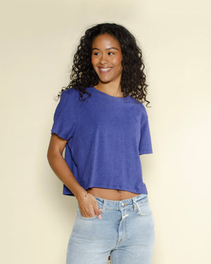 Un tee-shirt de la marque American Vintage de couleur bleu mûre idéal pour un look sobre mais élégant. On adore le toucher léger et fluide du tissu qui rend le top très confortable. Ce T-Shirt peut compléter un look avec un jean !