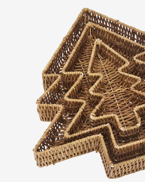 Ensemble de trois plateaux en rotin et fer / tressage artisanal naturel / forme de sapins de noël / parfaits pour le rangement ou la décoration