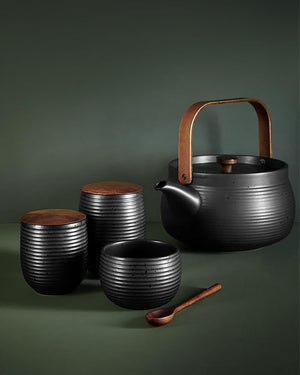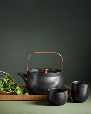 Une théière noire au design japonais de 0.6L de la marque ASA Selection. On adore cette généreuse théière en porcelaine avec son manche en bois. Elle contient un filtre extra large en acier inoxydable offrant aux feuilles de thé suffisamment d'espace pour se développer et libérer leur saveur. On craque pour sa couleur noir mate !