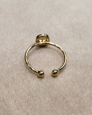 Bague en perle de céramique sérigraphiée avec une couronne sur une base en plaqué or.