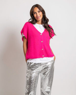 Gilet Michele de la marque Balance ton pull. On adore ce gilet pour femme d'un sublime rose ! Avec sa coupe versatile, il se porte aussi bien ouvert sur une chemise que fermé sur un t-shirt, idéal pour un look chic et cosy au quotidien. On fonce sur ce super rapport qualité/prix !