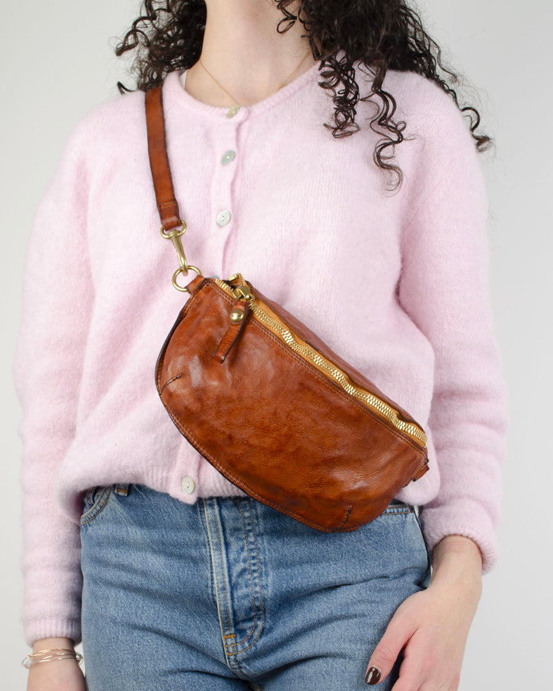 La banane cognac pour femme de la marque Campomaggi a un format idéal et très pratique. On adore la porté avec toutes les tenues, elle passe partout et tous le temps. Découvrez la collection Campomaggi ici.