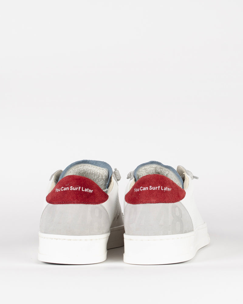 Baskets P448, en blanc, bleu et rouge /  détail rouge contrastant / design moderne / confortable / look sportif / tendance