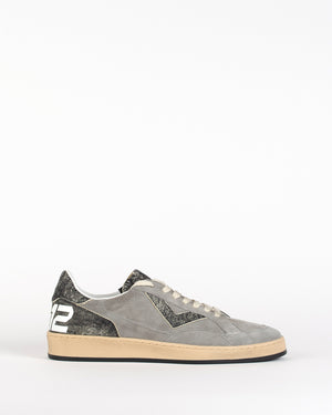 Baskets 4B12 en cuir suédé / minimalistes et élégantes / associent les teintes gris et noir / style sobre / moderne et polyvalent / design épuré.