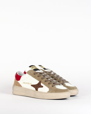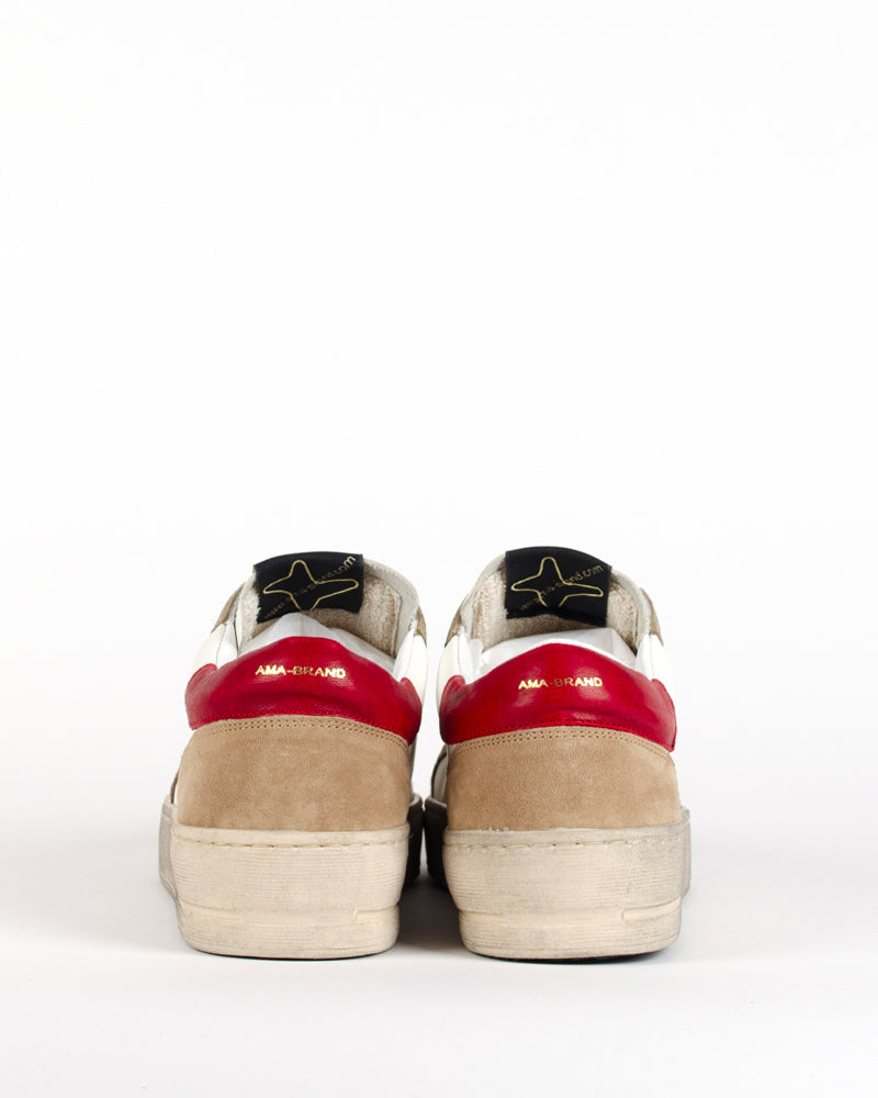 Baskets Slam / blanc et beige / allure sportive / moderne / rehaussée / touches beige / texturé / détails rouges audacieux / design affirmé / sobre