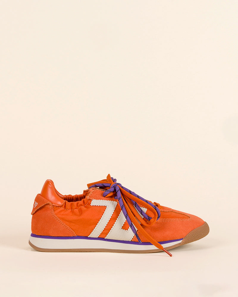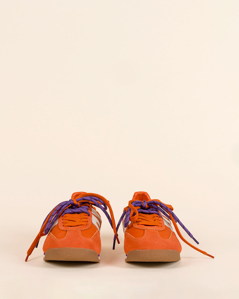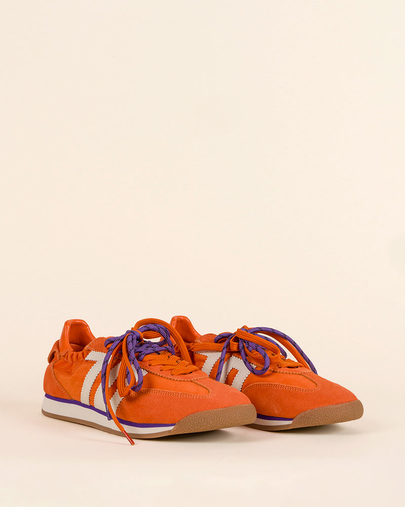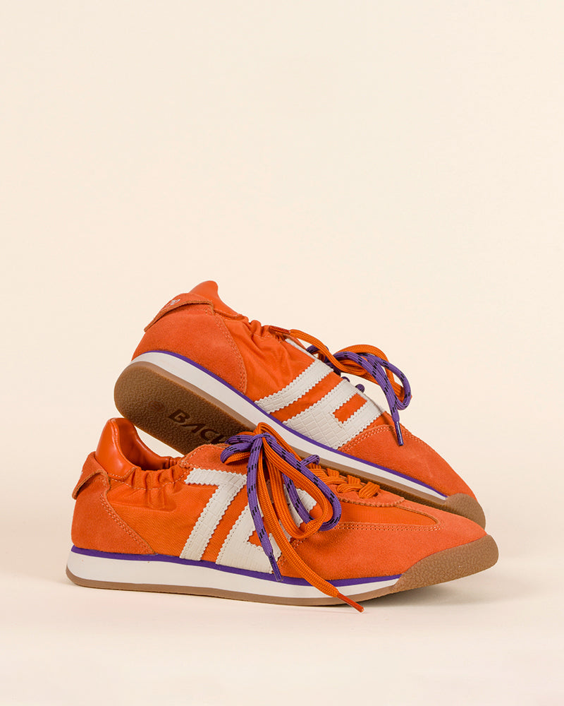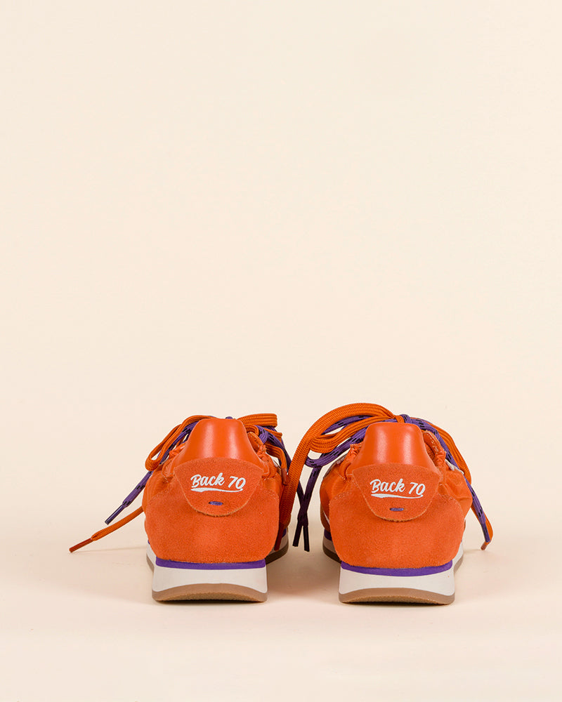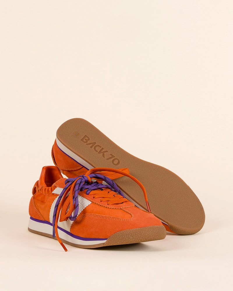 Baskets Back 70 Rocket / Sneakers rétro running / Chaussures orange et blanche / détails violet / parfait pour la mi-saison