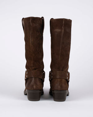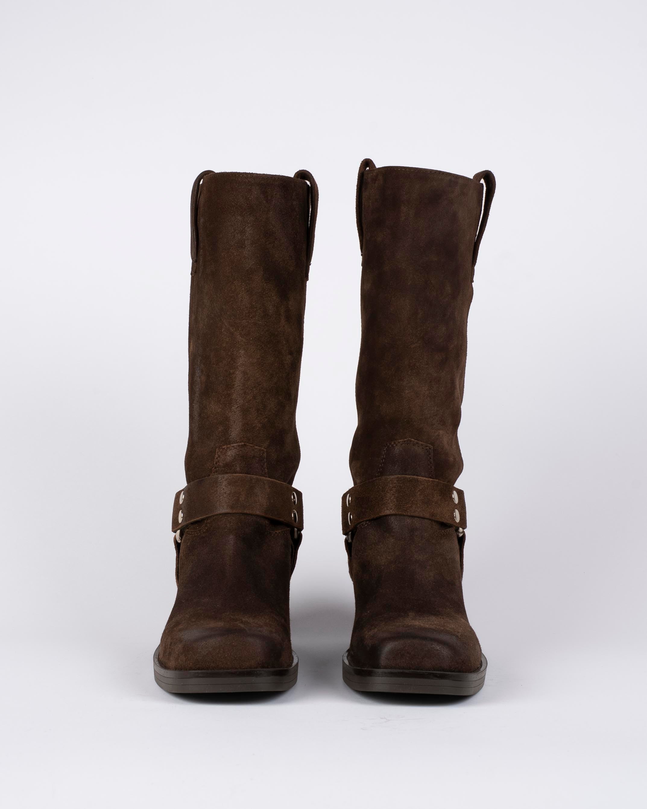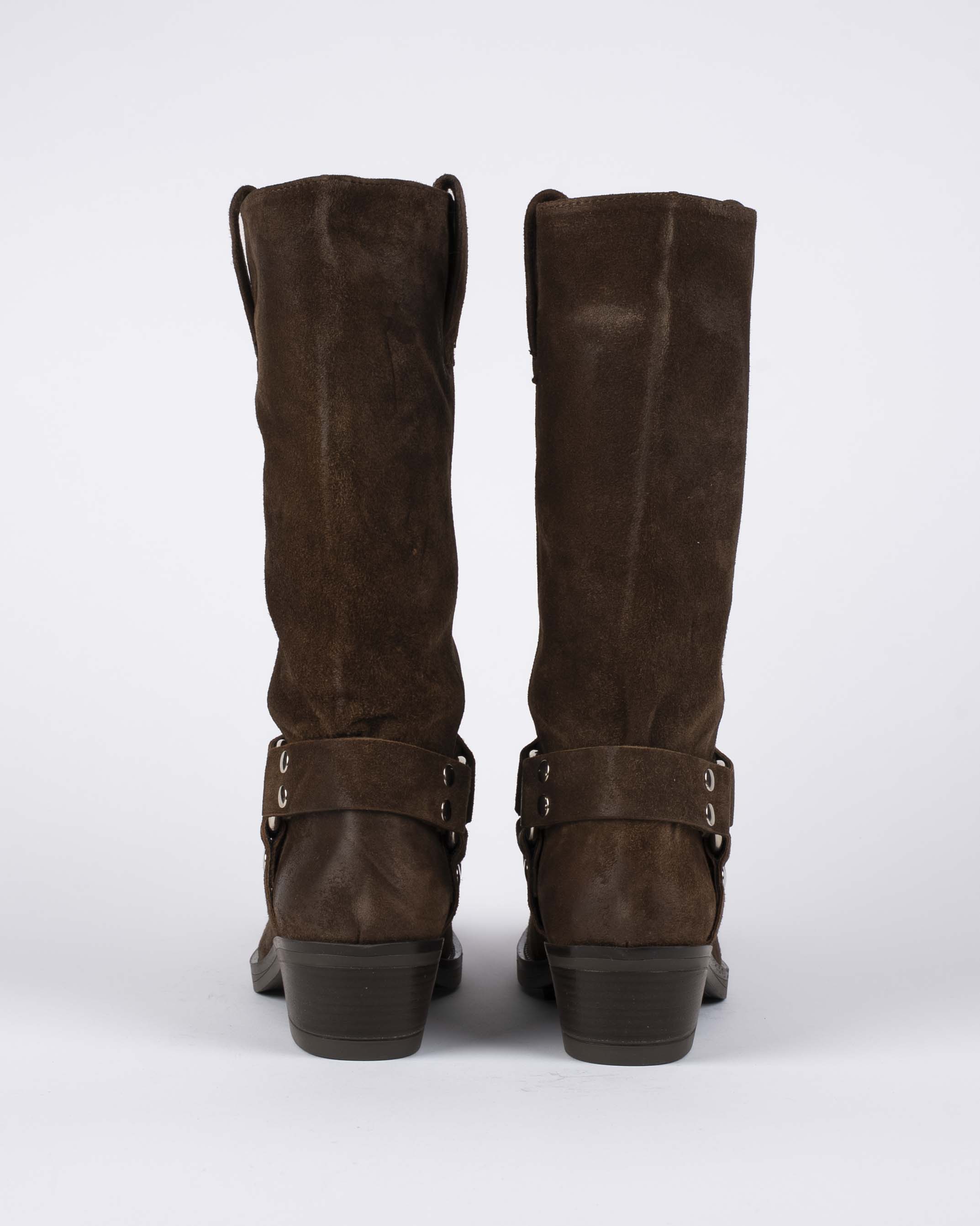 Bottes hautes en cuir suédé / Féminine / confortable / Matière veloutée / détails argenté / embouts arrondis / talon large