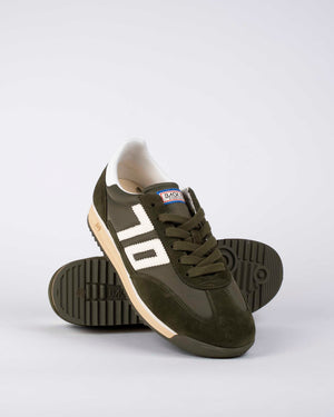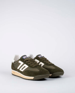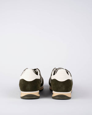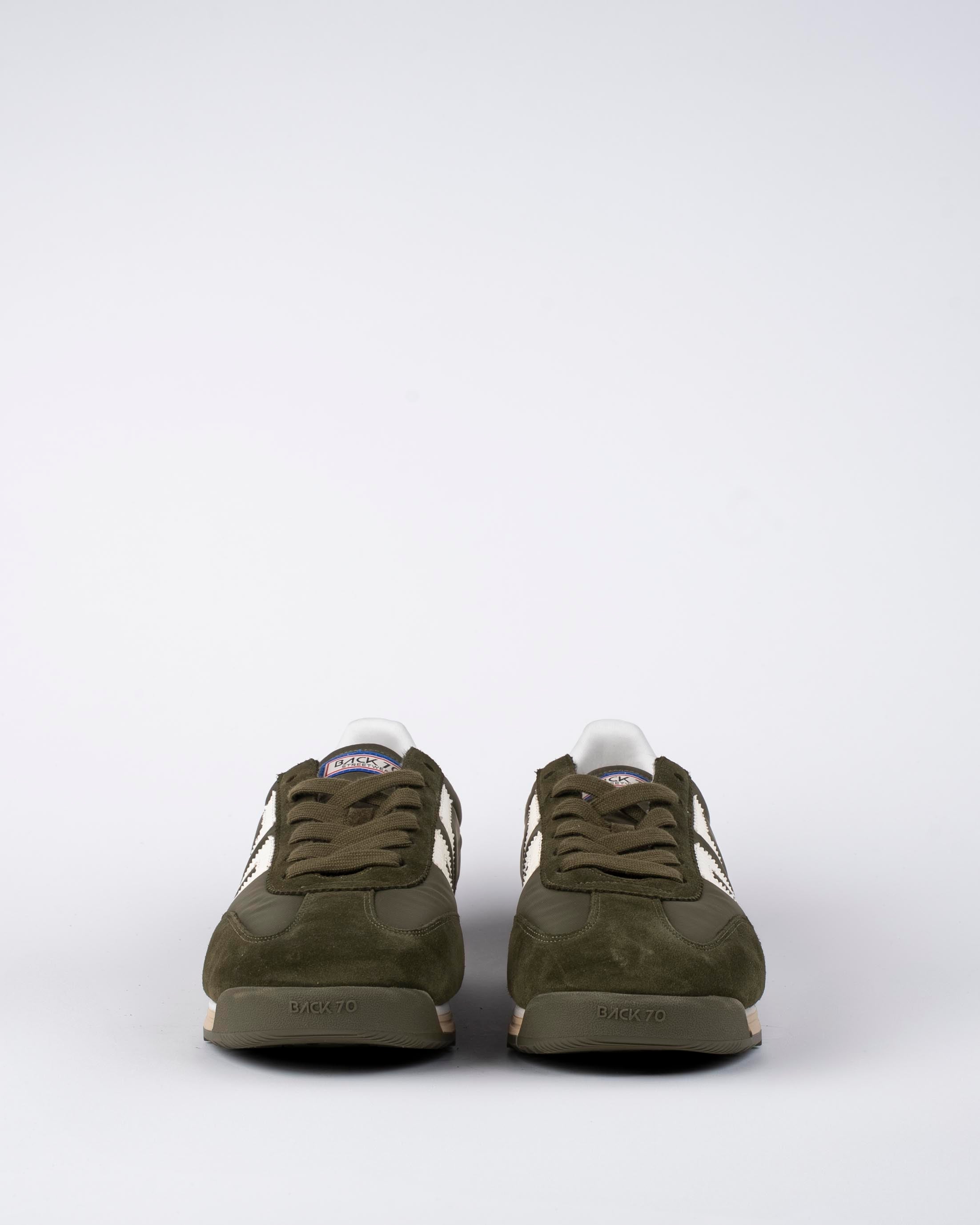 Baskets Back 70 Jogger / Sneakers rétro running / Chaussures kaki et blanc / Baskets cuir suédé et nylon