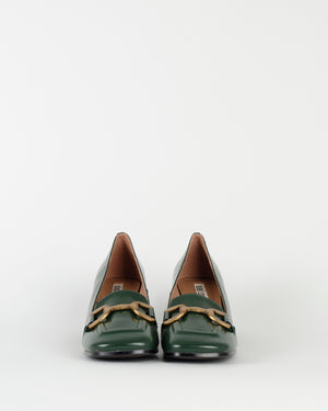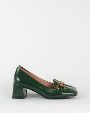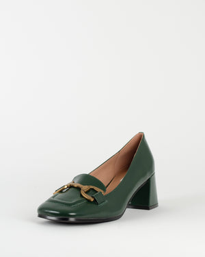 Des mocassins à talons pour femme en cuir vernie de la marque Billi Bi. Cette paire de mocassins à talons vernis en cuir est l'indispensable chaussure de la rentrée.