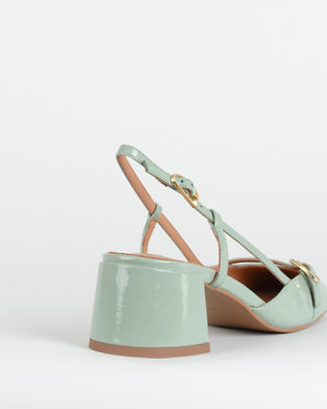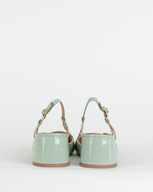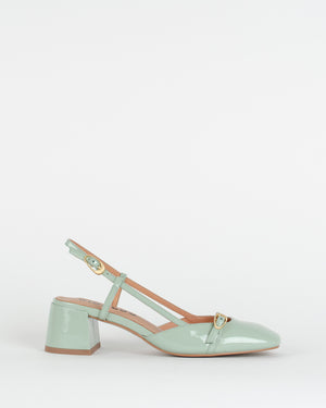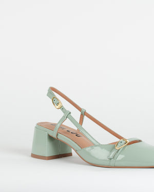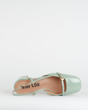 Une paire d'escarpins vernis vert aqua de la marque Bibi Lou. Ce sont des chaussures pour femmes super confortables et élégantes ! On craque pour la bride sur la cheville qui donne une nouvelle dimension à la chaussures. On veux ces escarpins femme tendance 2025 dans nos dressings !