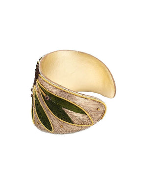 Bangle métallique / brodé à la main / fil métallisé / strass / perles en laiton / Doublure en cuir souple / réglable par pression