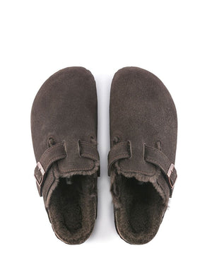 Sabots Birkenstock Boston fourrés marron / Coupe iconique et confortable / Bride ajustable avec boucle métallique / Tige en cuir robuste / Intérieur doublé en fourrure pour plus de chaleur