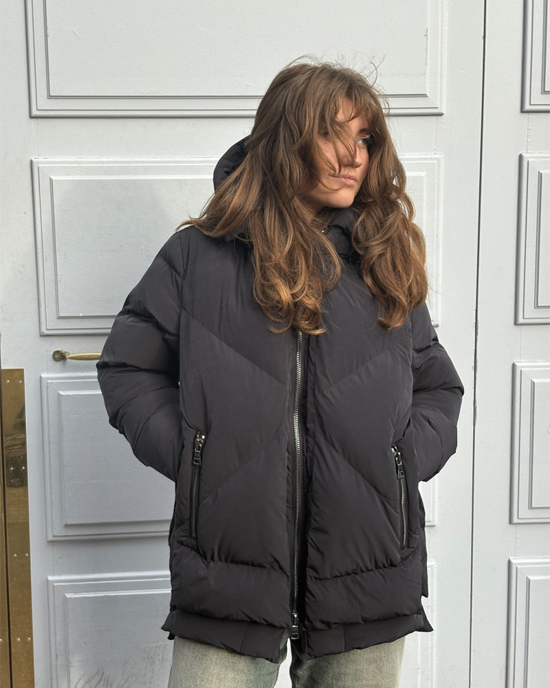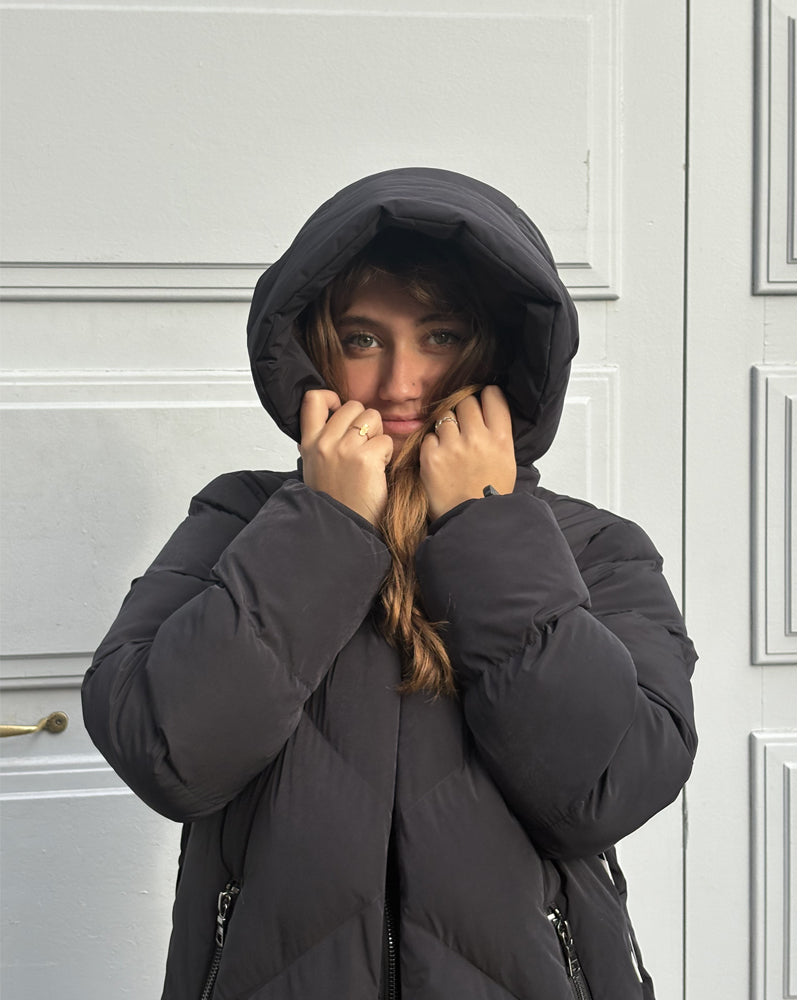 Parka doublée / capuche/ zips d'ouverture de chaque côté / doudoune longue tendance / fourrure marron
