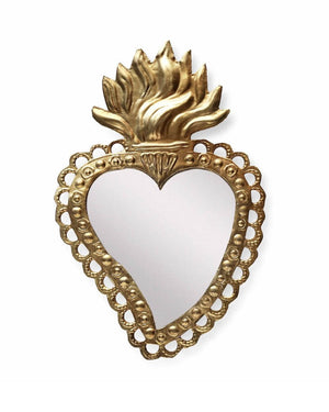 Miroir forme de coeur / flamme sur le dessus / ex voto décoration murale