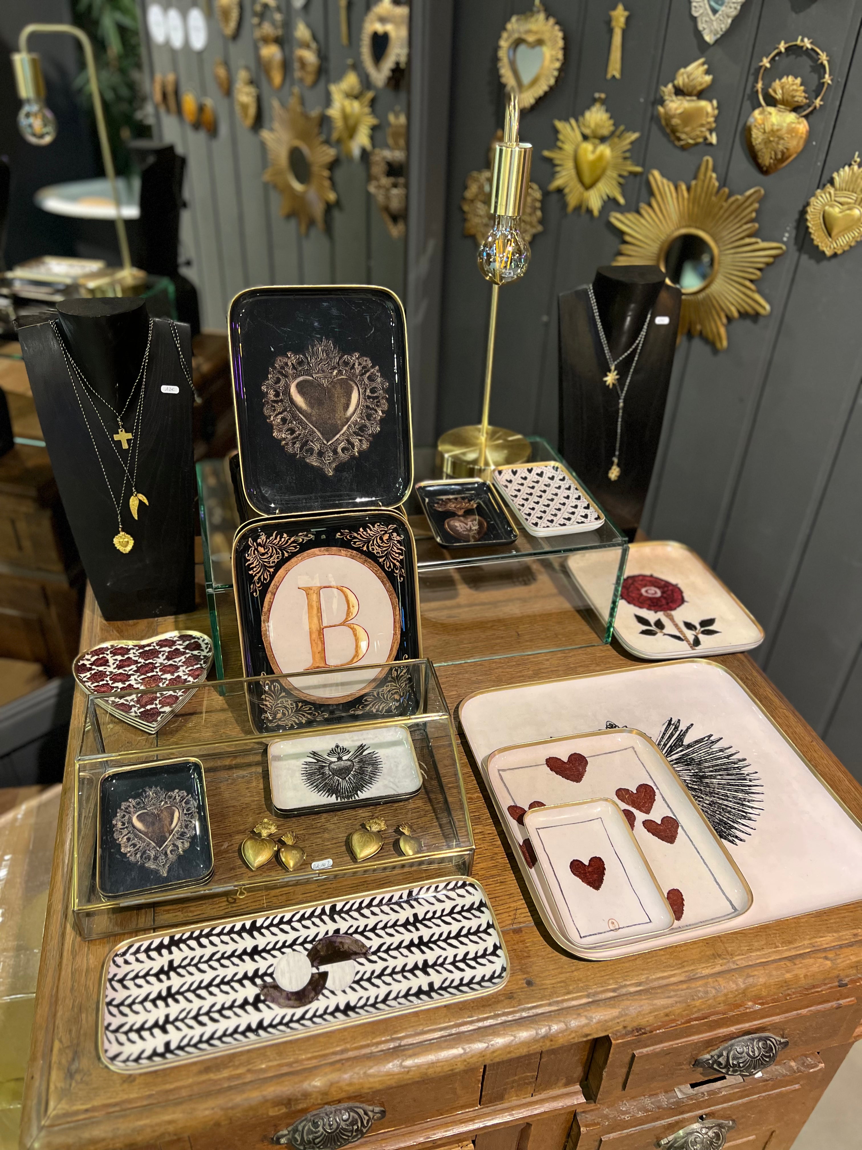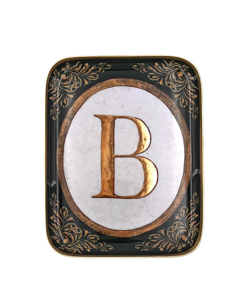 Plateau rectangulaire enluminure B / vide poche ou plateau bijoux