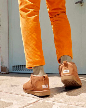 Une paire de boots utra mini camel intemporelle pour homme idéale pour un look d'automne ! Vous garderez vos pied au chaud pendant toute la saison froide avec cette paire de bottes Ugg Men. On craque toujours pour ces pièces chaudes et intemporelles de chez Ugg !