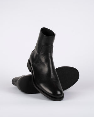 Élégantes / robustes / boots mi-hautes en cuir noir / Fabriquées à la main / sophistiquée / bon maintien de la cheville
