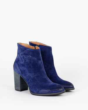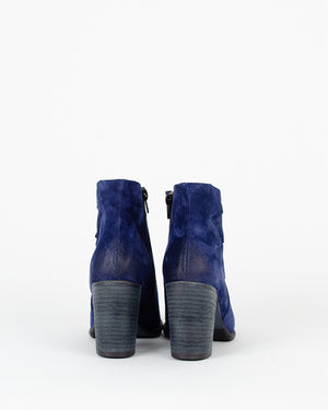 Paire de boots Les Venues à talons pour femmes en cuir suédé bleu de la marque Les Venues. Ces bottines ont une fermeture zippée sur le côté intérieur de la chaussure, avant et arrière patiné pour plus de caractère.