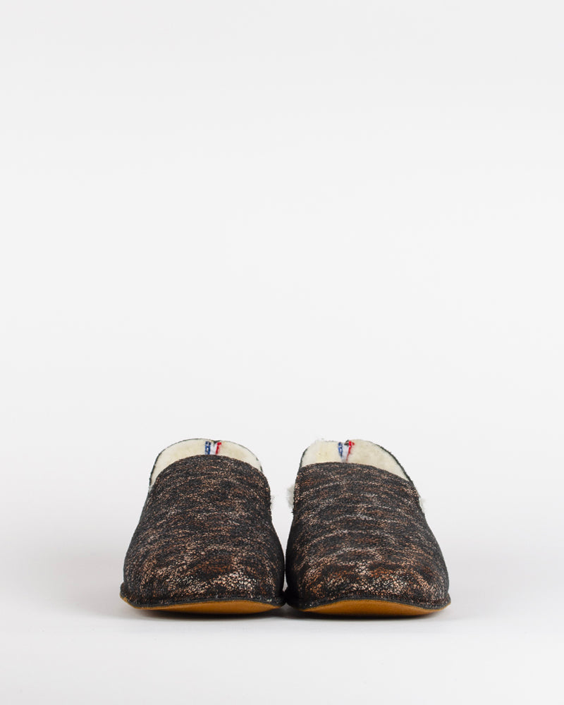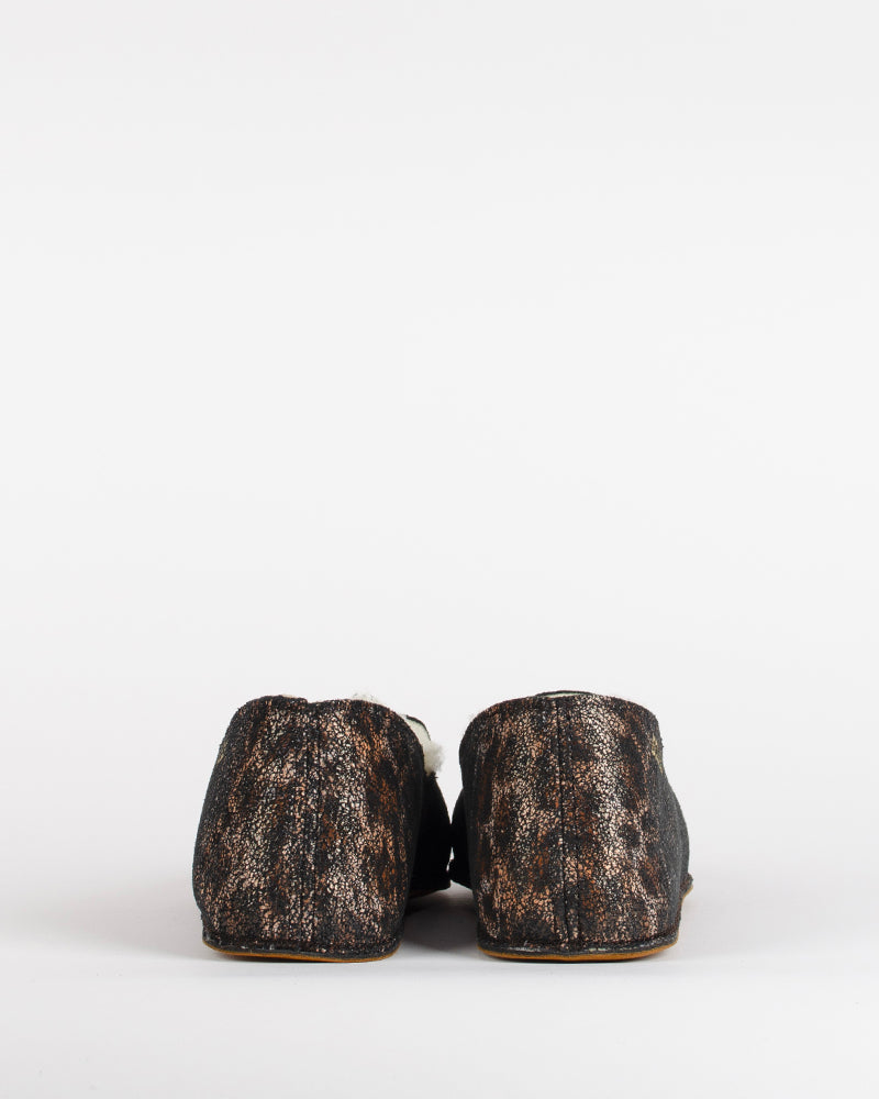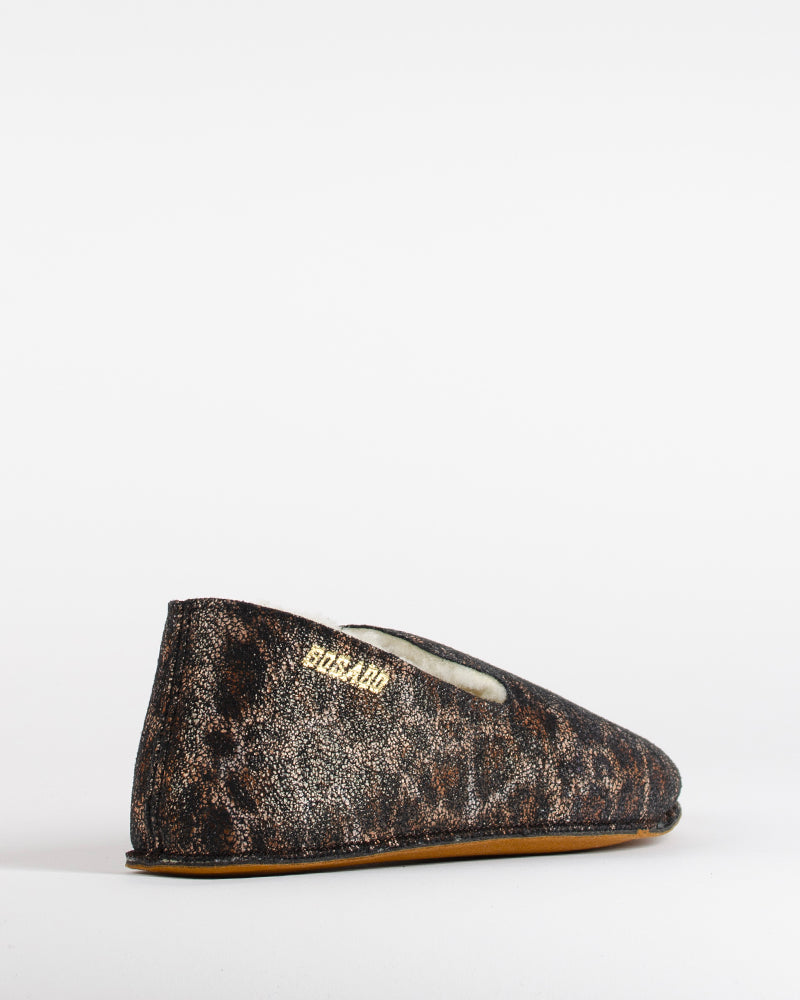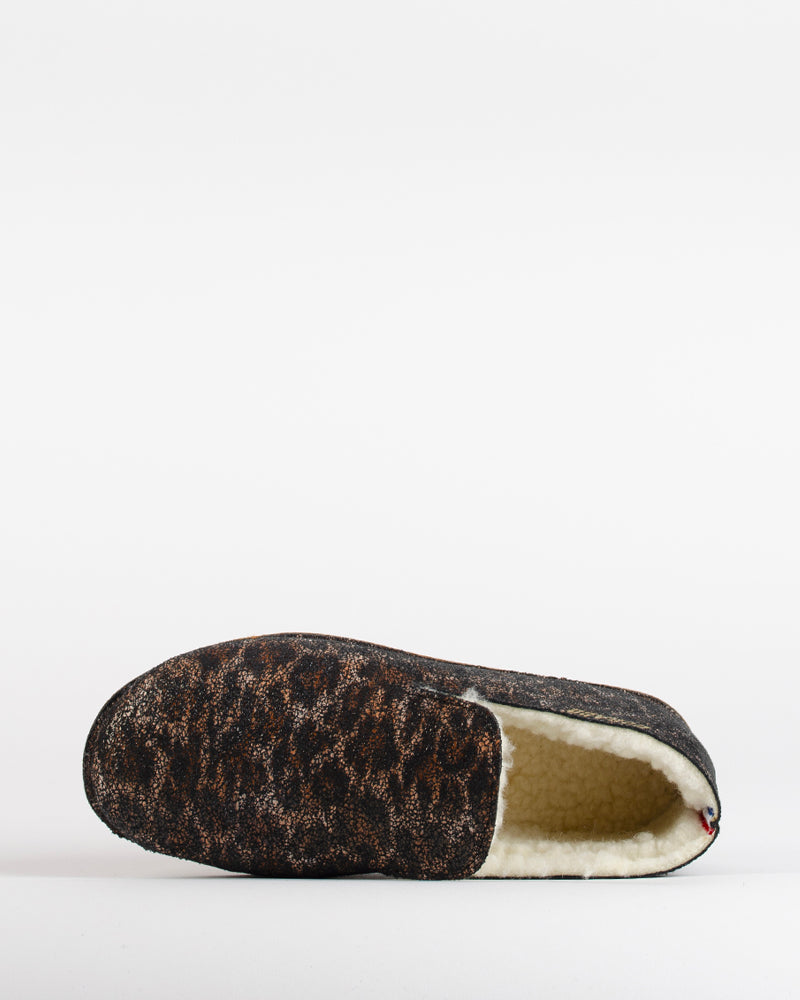 Pantoufles Bosabo / look cosy et élégant à la maison / léopard / doublure en moumoute blanche / Plates
