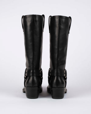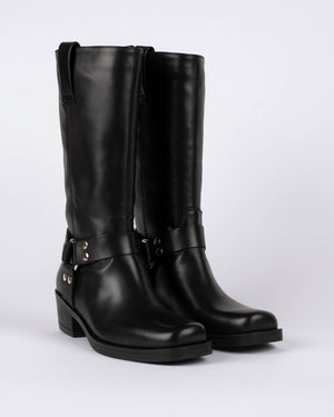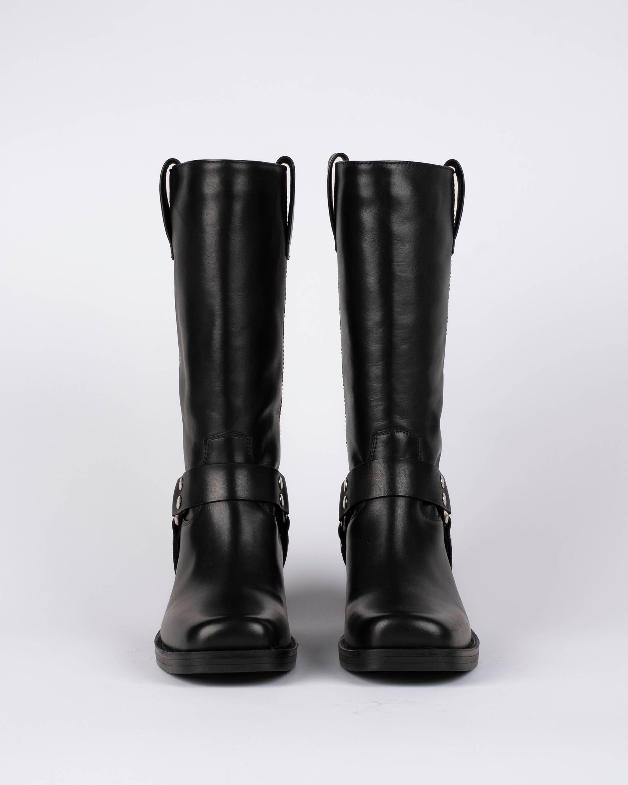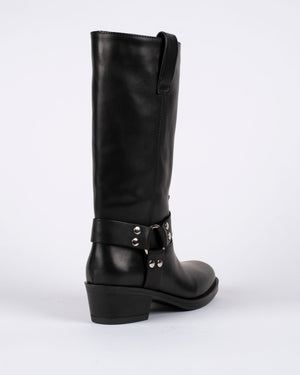 Bottes en cuir lisse / Féminine / confortable / détails argenté / embouts arrondis / talon large