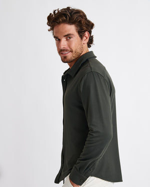 Chemise Pagani en piqué de coton / Coupe droite confortable / Col chemise classique / Fermeture boutonnée / Tissu extensible texturé légèrement gaufré / Intérieur en coton