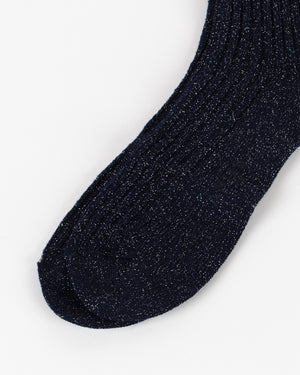 Chaussettes ANT45 / Maille côtelée / Longueur mi-haute / Logo ANT45 sur la semelle / Coloris bleu marine chiné avec fil métallisé