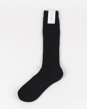 Chaussettes ANT45 hautes / Maille côtelée / Coloris noir uni / Logo ANT45 sur la semelle