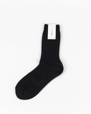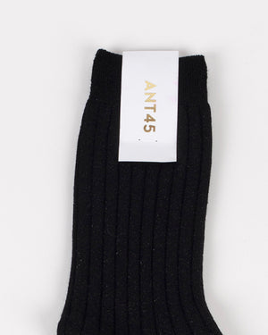 Chaussettes ANT45 / Maille côtelée / Longueur mi-haute / Logo ANT45 sur la semelle / Coloris noir uni