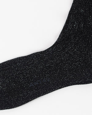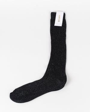 Chaussettes ANT45 / Maille côtelée / Fils lurex discrets pour un effet légèrement pailleté / Longueur mi-haute / Logo ANT45 sur la semelle / Coloris noir